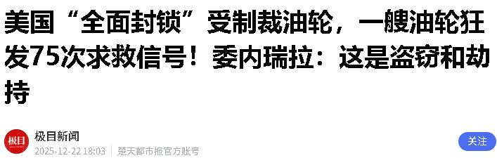 更值得注意的是,这已经是美方10天内的第二次拦截操作,12月10日,美方就曾在委内瑞拉附近海域拦下另一艘油轮,毫无国际法依据地宣称“涉嫌运输受制裁石油”。