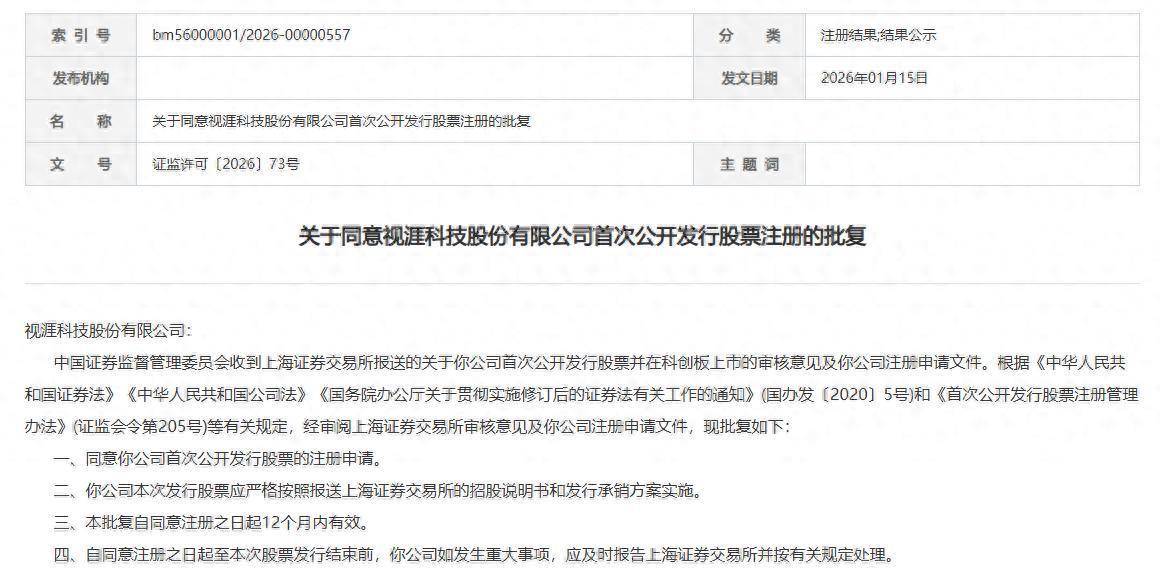 智通财经APP获悉,1月15日金牛财富,中国证监会发布《关于同意视涯科技股份有限公司首次公开发行股票注册的批复》。据悉,视涯科技拟在上交所科创板上市,保荐机构为国泰海通,拟募资20.15亿元。